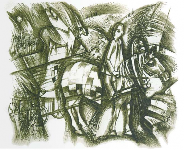 Р.Р.Маглиев. «Мальчик и лошадь». Цветная литография. 1995