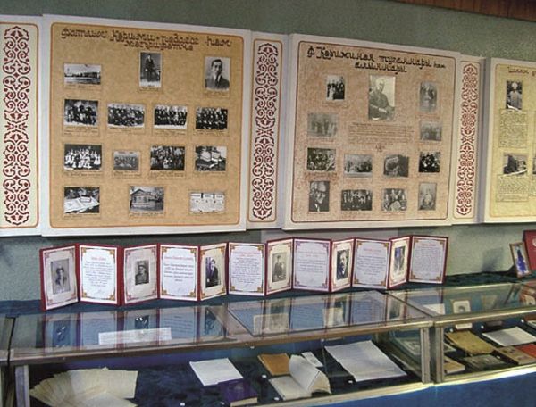 Экспозиция бер залда оештырыла. Күргәзмәдә Ф.Г.Кәриминең китаплары, документлары, мемориаль әйберләре, аның әнисе Мәгъсүмә абыстайның фотосурәтләре, шәхси әйберләре һәм әтисе Г.Кәримовның документлары, Р.Фәхретдин турындагы материаллар бар. Мөхәррире Ф.Кәрими булган «Вакыт» газетасы төпләмәсе (1909) күргәзмәгә куелган. Экспозиция бүлегендә авыл тарихына багышланган документлар, XIX йөз ахыры — XX йөз башы татар халкының гамәли бизәлеш сәнгате һәм көнкүреш әйберләре; XX йөз башы крәстиян агач йортының эчке күренеше күрсәтелә.