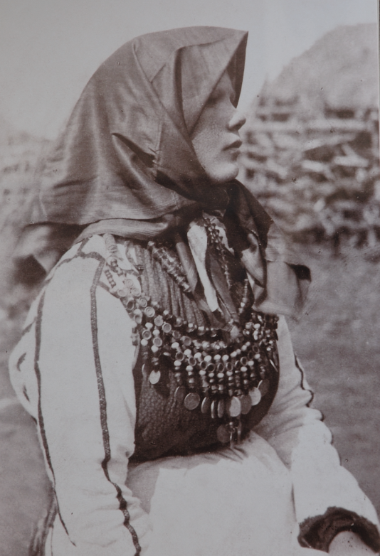 Мордва кызы традицион милли киемдә. ХХ йөз башы фоторәсеме. ТР Милли музее